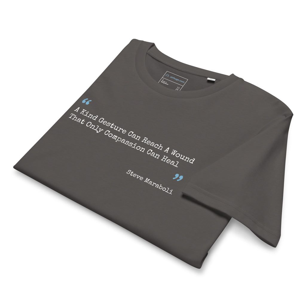 Rooted in AirHugs’ mission to spread compassion through everyday life, this tee celebrates the quiet strength of empathy and the beauty of showing up with care. Thoughtfully crafted from 100% organic cotton, it’s soft, breathable, and designed to feel as comforting as the message it carries.